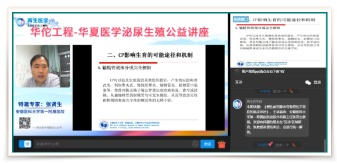 张贤生教授介绍了前列腺炎(CP)的流行病学和临床分类、CP影响生育的可能途径和机制、如何确定男性不育症由CP引起、CP引起男性不育症的治疗等内容。本次网络课程吸引了网民积极参与,反响热烈。