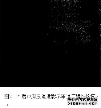 结 果:9例前尿道狭窄患者,手术4周后拔除尿管,7例患者排尿通畅,2例间断进行尿道扩张2个月。术后3个月所有患者均排尿通畅。